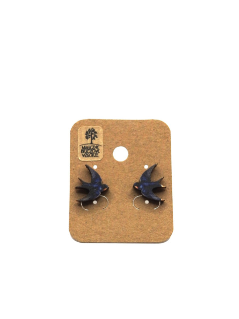Kolczyki jaskółki nadruk na drewnie, stal chirurgiczna
